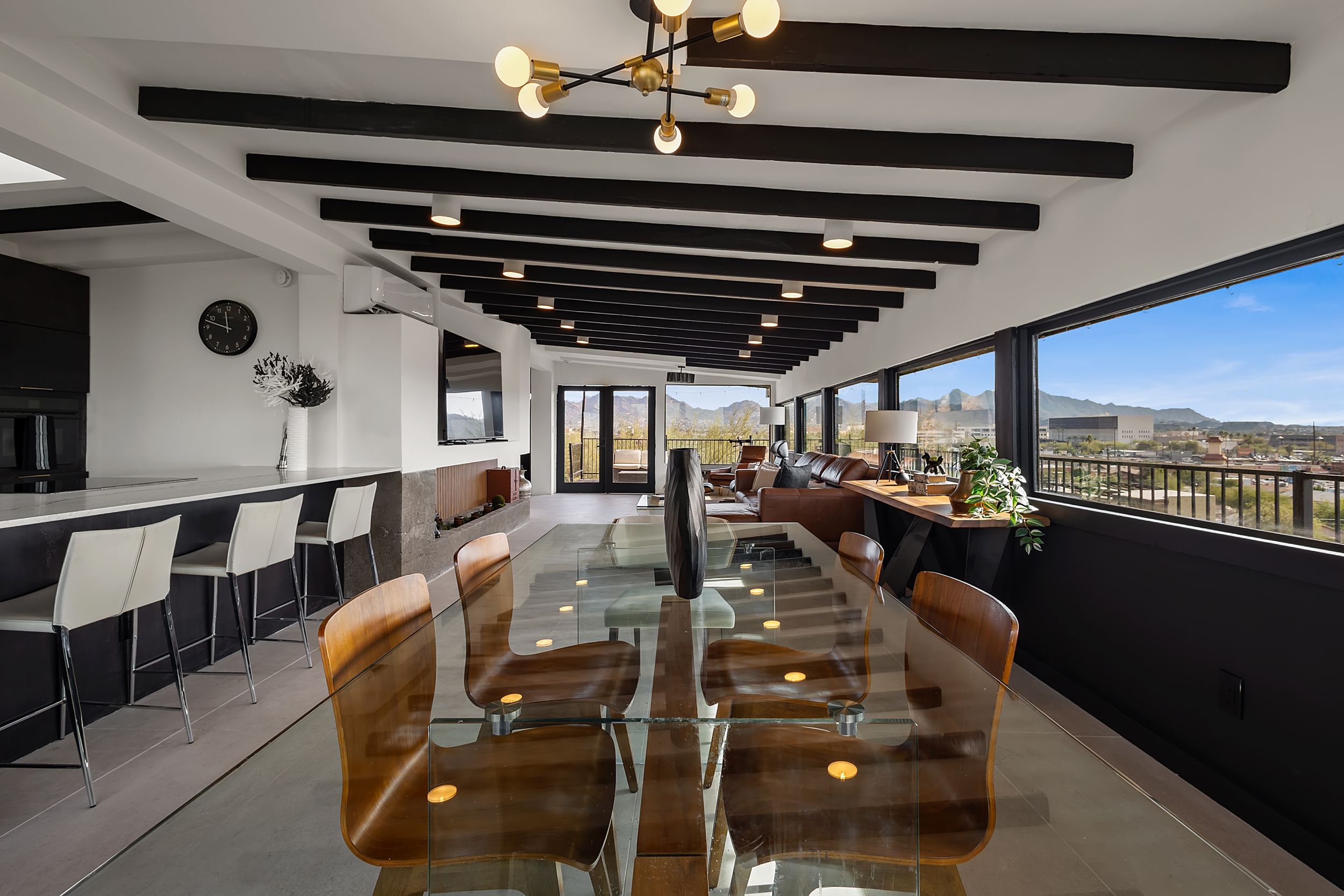 Welcome to 'S Haus—a newly renovated modern hillside desert escape perched above Phoenix. This designer space blends clean modern lines with the natural desert surroundings to create a stay that feels elevated, peaceful, and one-of-a-kind. Key Features: * Breathtaking panoramic views of the Phoenix city skyline, mountains, and sunsets. * Dramatic floor-to-ceiling windows for an immersive experience. * A sleek, modern, and fully equipped kitchen for preparing delicious meals. * Expansive living areas to unwind and enjoy the sparkling city lights at night. * A dedicated workspace with an inspiring setting for productivity. Whether you’re here for a romantic getaway, to explore the desert, or to work remotely, this home offers the perfect backdrop for an unforgettable stay.