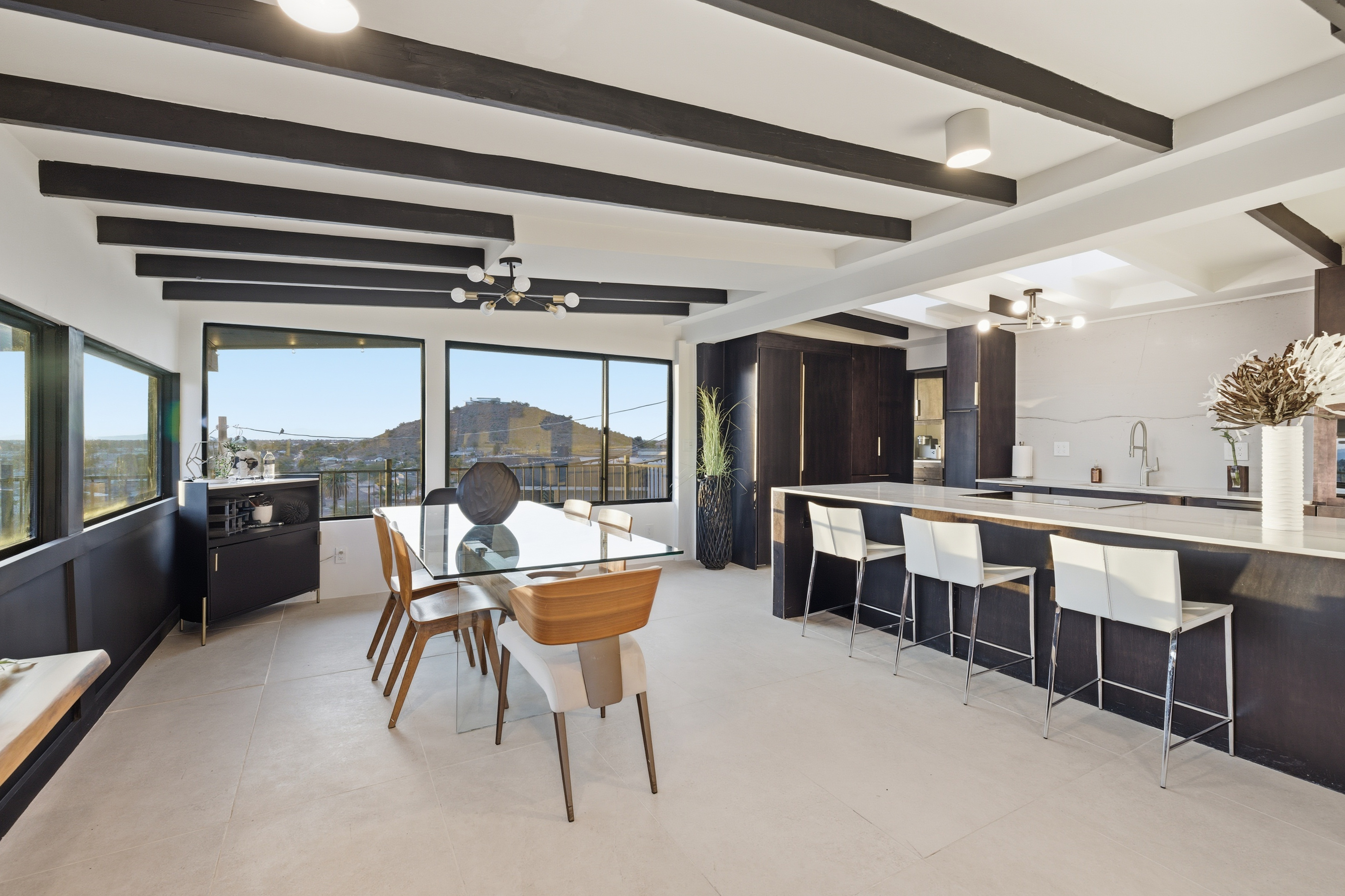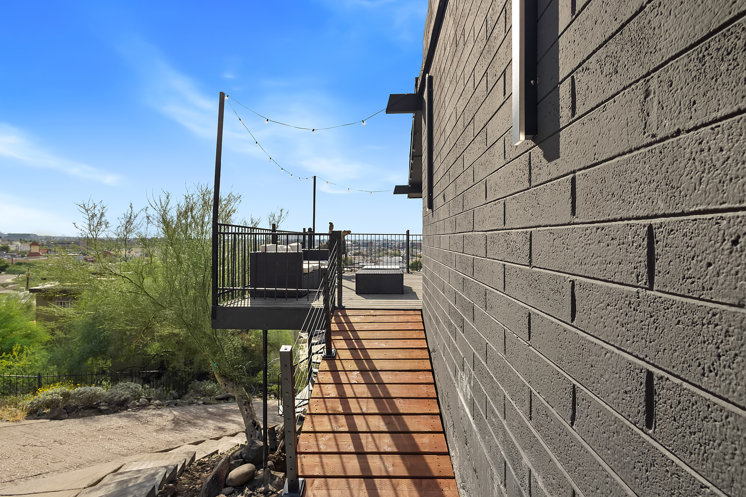 Escape to the S Haus, a modern hillside designer home in Sunnyslope north central Phoenix. Enjoy breathtaking panoramic city and mountain views at this perched mountain retreat home. Featuring a sleek kitchen and dedicated workspace, S haus is perfect for romantic getaways or remote work. Comfortably accommodates couples, small groups or solo travelers seeking a unique desert experience with stunning sunsets and sparkling city lights.